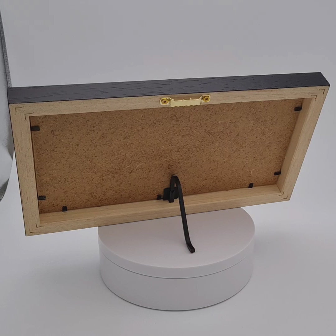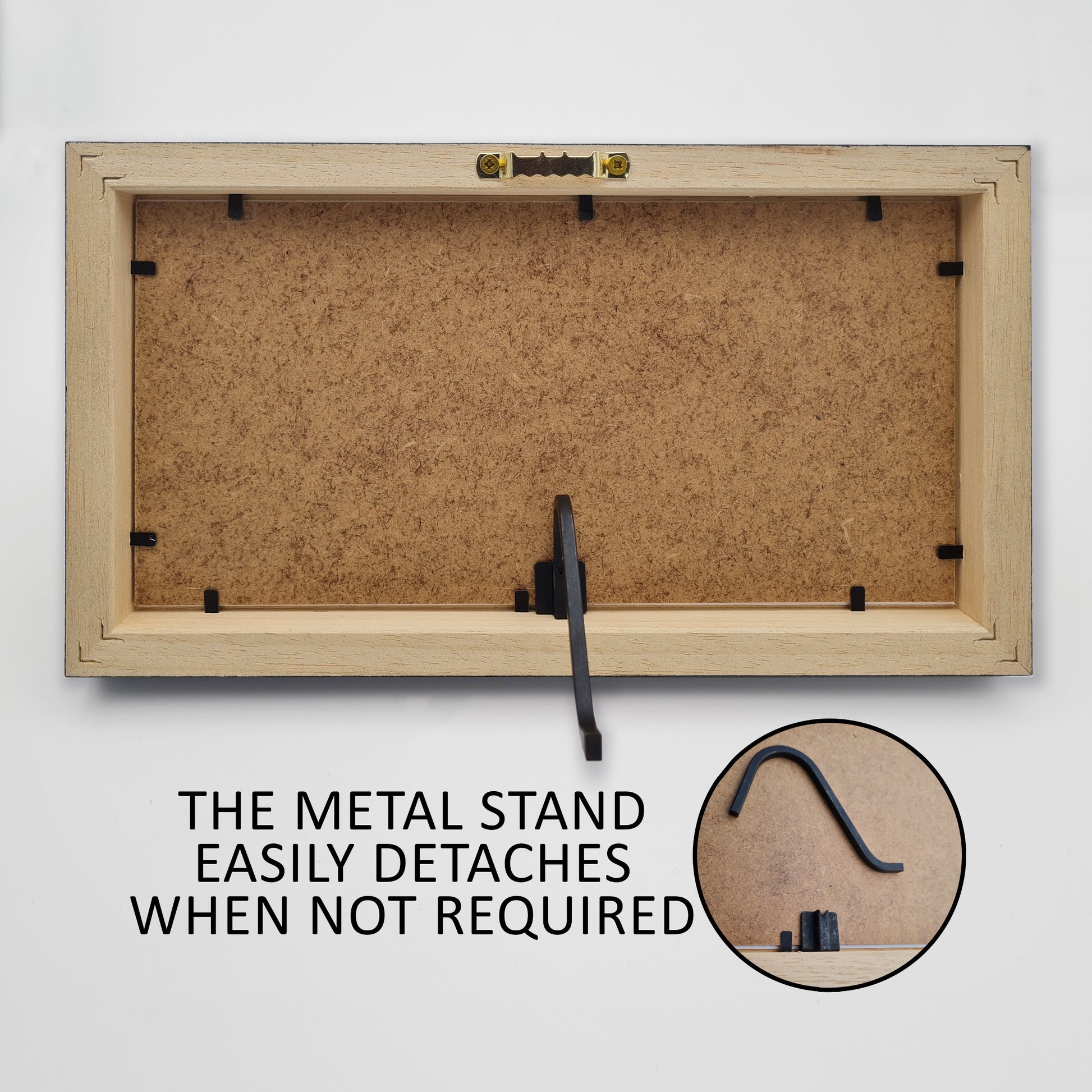 - Includes MDF back with sawtooth hanger, and optional metal leg stand (easily detachable).