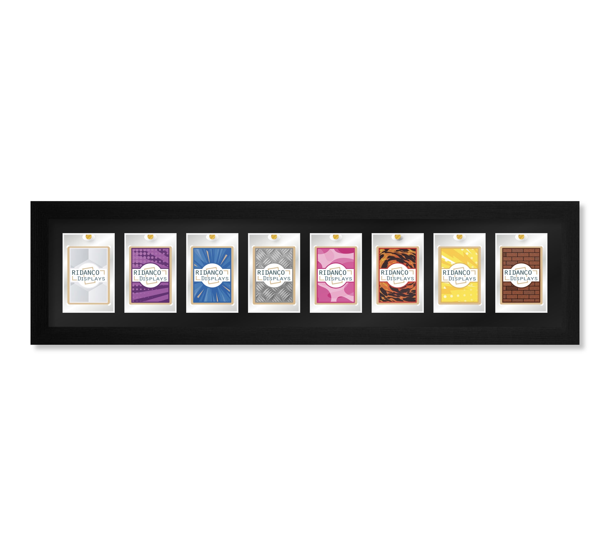 After much consideration, our new and improved design of magnetic (one touch) mag card display frames is now ready. The designs have been optimised, with improved sizing, more options, and up to date material choices, all with our expert understanding of the various sizes of mag cases from 35pt - 260pt. We even offer a 'hybrid kit' size (35pt-180pt), which allows you to easily display a large selection of mag cases of mixed sizes, by using simple foam plugs to bring each mag to the same depth within the frame.