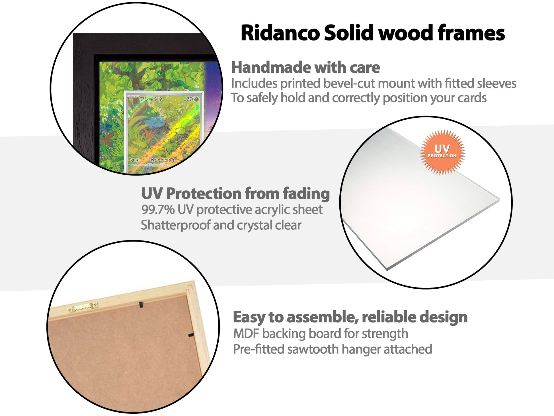 - Premium clear sleeves included, reliably held by strong-hold tape from the back of the mount